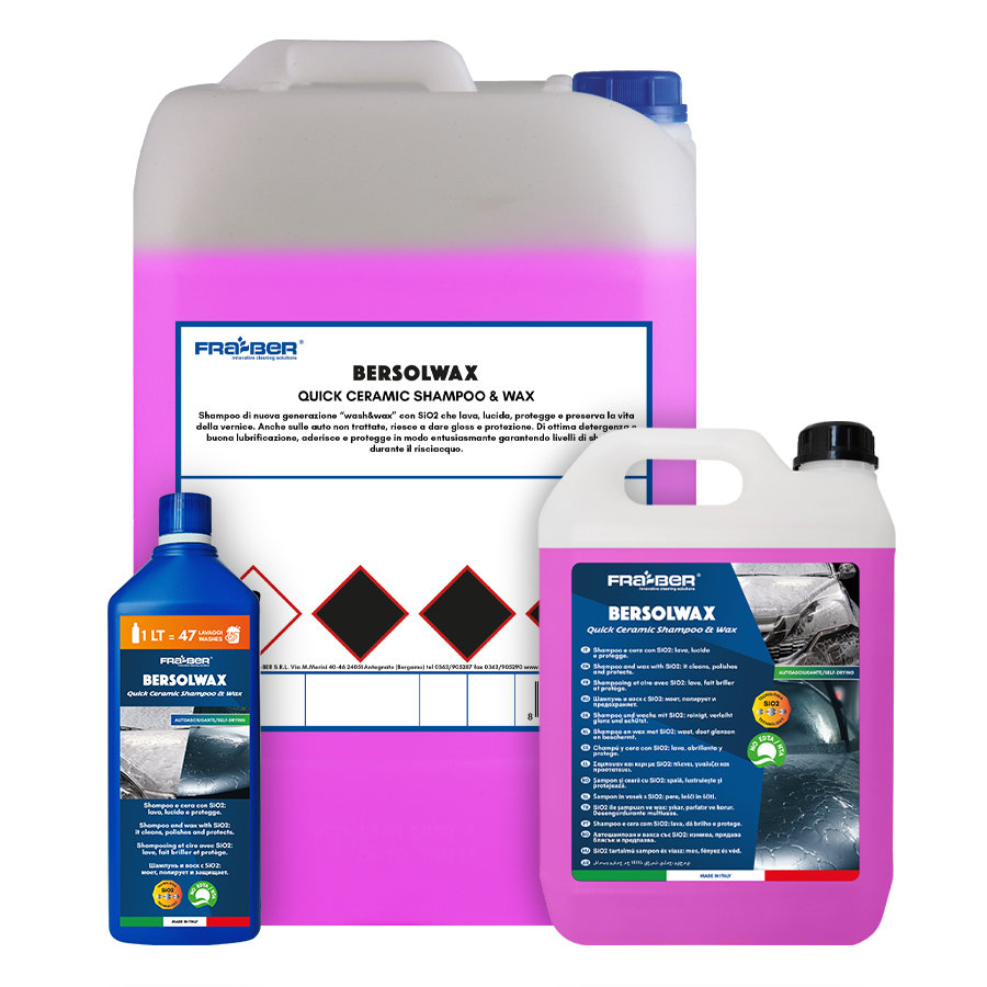 SHAMPOO E CERA COM SIO2: LIMPA, PULE E PROTEGE Shampoo “wash & wax” de nova geração com SiO2 que lava, dá brilho, protege e preserva o ciclo de vida da tinta. Transmite brilho e proteção mesmo em carros não tratados. Excelente detergente com boa lubrificação, adere e protege de forma apelativa, garantindo níveis de cobertura durante o enxaguamento. MODO DE USO: enxaguar o carro com jato de água para retirar a sujeira mais grossa, diluir 14-21ml em um balde de 4L de água (1:348 – 1:520) e lavar com luva e enxaguar. Ao usar um pistola de espuma, o produto pode variar de puro a diluído 1:3.