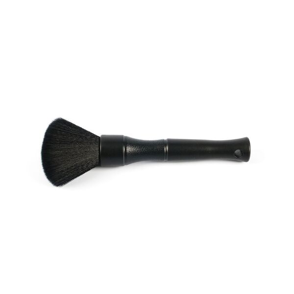 Este pincel foi criado para ser extremamente suave em qualquer tipo de superfície. É particularmente adequado para uso em tecidos e materiais delicados, inovadores e muitas vezes muito caros, como couro, alcântara, veludo acolchoado, camurça, seda, fibra de carbono, etc., pois as cerdas são macias e não arranham a superfície tratada. Esta escova, apreciada pelos detalhadores, foi concebida para melhor aplicar os produtos de limpeza, permitindo assim trabalhar com precisão e meticulosidade. Também é perfeito para tirar o pó de elementos frágeis, como molduras interiores polidas, telas e peças de plástico transparentes do painel. As escovas têm uma pega elevada para um aperto firme, o que evita que escorreguem com as mãos molhadas e podem ser penduradas num gancho para secar.