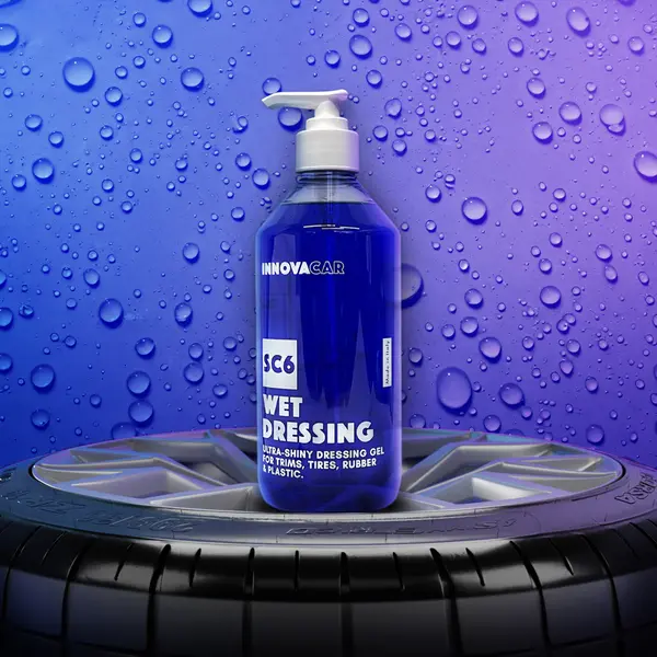 O SC6 Wet Dressing da Innovacar é um repelente de água ultrabrilhante de última geração, formulado para restaurar a cor intensa e o brilho de pneus, peças de borracha, vedações e peças de plástico para carros.