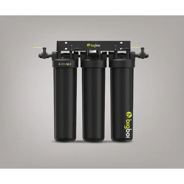 O D-IONIZR2 tem um filtro de 3 estágios configurado. O primeiro filtro é um filtro de carbono composto