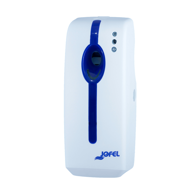 DIFUSOR DE SALA BÁSICO -Dispensador de carga de ambientador básico para perfumar o ambiente. -Feito de polipropileno de alta qualidade e resistência. -Trava com chave. -Dispensa as acusações refs Jofel. AKA. -LED informativo para operação e carregamento. -Cargas metálicas com válvula especial e 250 ml. -Integrado na linha atlântica, identificado por uma faixa azul. -Fácil limpeza e manutenção com frente dobrável. -Decorativo, pequeno volume e econômico. -Instalação e operação simples. -Robusto e duradouro, resistente a produtos químicos. -Recomendado para instalar em altura. - Uso generalizado e universal. SKU:AI90000Categoria:dispensadores ambientais