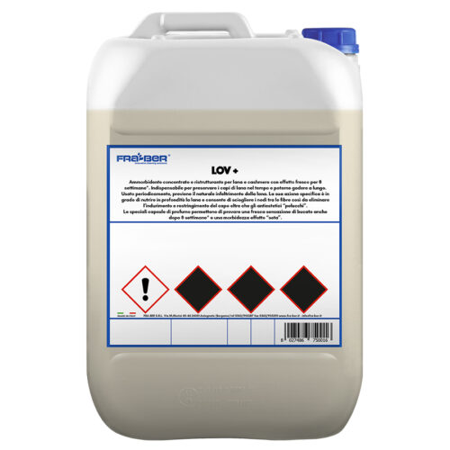 AMACIADOR E BALANCEADOR CONCENTRADO Produto anti-feltragem para lã e caxemira com efeito condicionador. Lov + com efeito condicionador penetra profundamente nas fibras evitando que a peça enrijeça e encolha. As microcápsulas especiais de fragrância proporcionam uma sensação de limpeza fresca e rigidez. MODO DE USO Dosagem automática: conecte o Jerry-can à conexão da bomba para condicionadores de tecidos. O produto é dispensado automaticamente através do controle automático de programação. Para mais informações consulte a ficha técnica. Doses para máquina de lavar/lavar à mão 1 tampa = 50 ml Doses Suavidade e perfume Extra descobertas e perfume Máquina de lavar 4-5 kg 20 ml (2/5 tampa) 40 ml (tampa 4/5) Máquina de lavar de 6 a 8 kg 40 ml (tampa 4/5) 80 ml (1 tampa + 3/5 tampa) 10 kg à mão 2