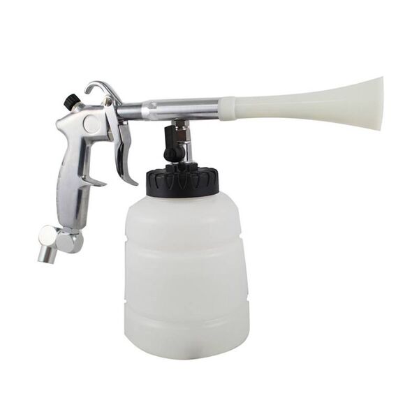 O Classic Booster² funciona com um tubo rotativo de plástico de alta qualidade (fabricado no Japão). O Classic Booster² é uma pistola de limpeza de ar comprimido com um dispensador. Use apenas o ar de alta pressão para tirar o pó ou com água/líquido de limpeza no dispensador para limpeza. O "efeito tornado" libera partículas de sujeira com grande força da superfície a ser tratada. Perfeito para limpar interiores de carros, painéis, dutos de ventilação, o espaço entre os assentos do carro, trilhos do assento do carro, ao redor do tanque de combustível, números da placa, caixa de câmbio e freio de mão, espaços de armazenamento. Resultados surpreendentes em capas de assento de carro e tapetes. O Classic Booster funciona com um limpador universal tradicional, mas também com agentes de limpeza